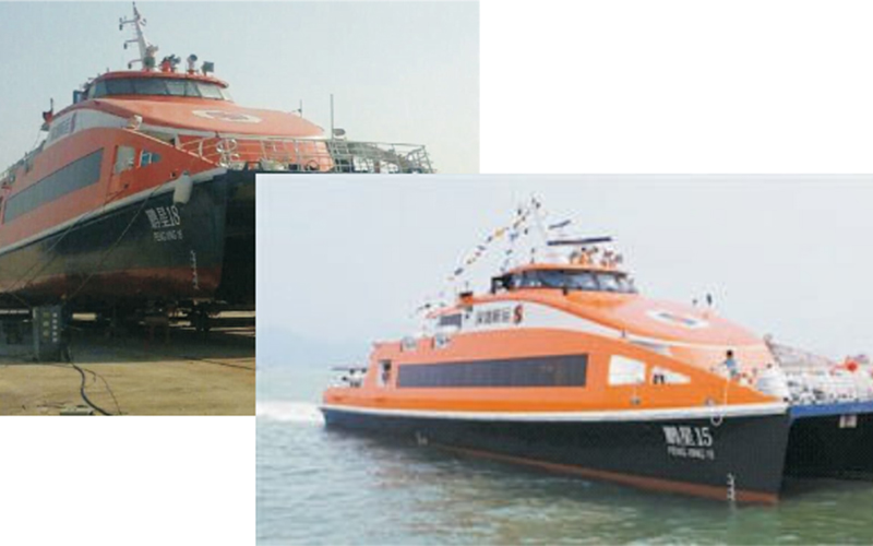 300客鵬星高速客船船體及上建材料;鋁合金總長:42.3米 型寬:10米 型深:3.4米 航速:28.4節(jié) 載客:300客